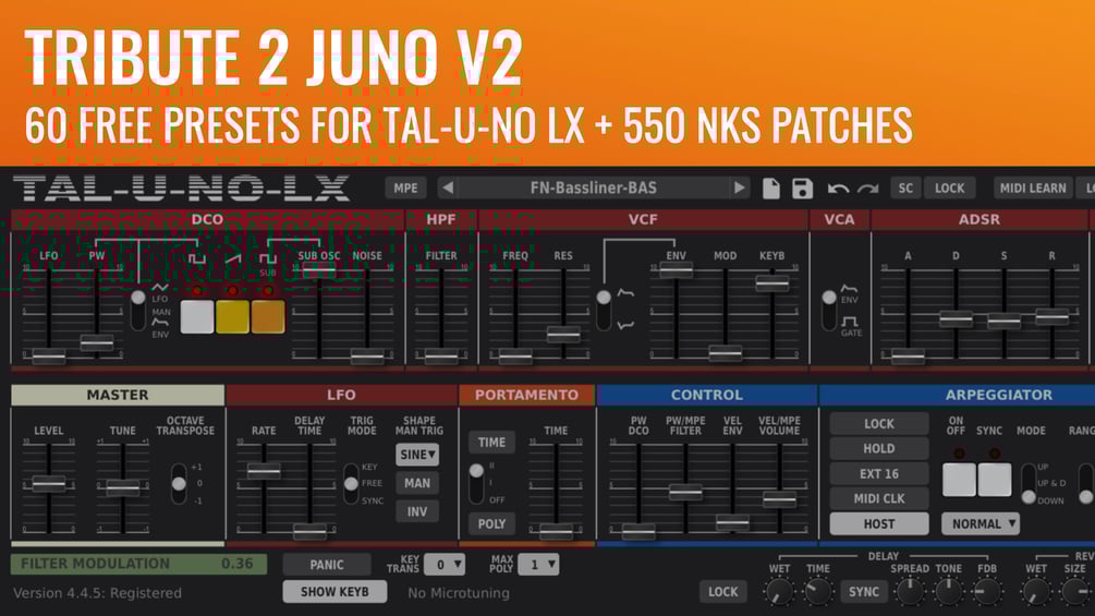 Tribute To Juno V2, 60 FREE Presets For TAL-U-NO-LX Synthesizer Plugin & 500+ NKS Patches